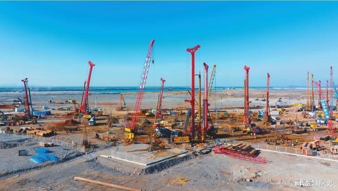 2024年6月,深层地基处理上马,2.1平方公里范围里插沉管碎石桩,每根直径1米,深入海床填碎石加固。